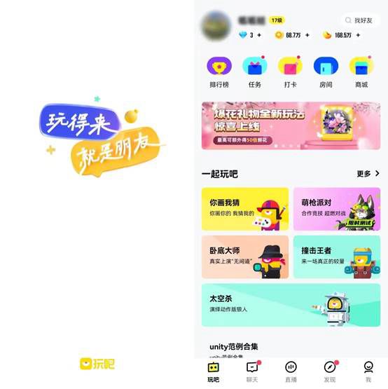 玩吧秉承"玩得来就是朋友"的理念,通过具有强大社交机制的游戏场景、丰富的互动社区场景,让用户在"玩"中培养默契,实现轻松交友。如"卧底大师"、"狼人游戏"、"你画我猜"等游戏场景,聚合了许多喜爱聚会游戏的年轻人,让大家随时随地玩到一起。同时,玩吧重视社交关系沉淀,打通平台内多种场景,如在互动社区场景中设置"狼人游戏讨论专区"、"画猜接龙笑死我了"等话题,为游戏玩家之间增进了解提供了更多空间。此外,玩吧助力年轻群体破圈寻找"玩得来"的好友,多次联合大热影视综作品,如大热电影作品《长津湖之水门桥》、《奇迹·笨小孩》,热门综艺《一年一度喜剧大赛》等发起创意活动。玩吧结合平台内互动社区、互动游戏场景,让影视综粉丝与玩吧内拥有不同兴趣点的年轻人轻松玩到一起。